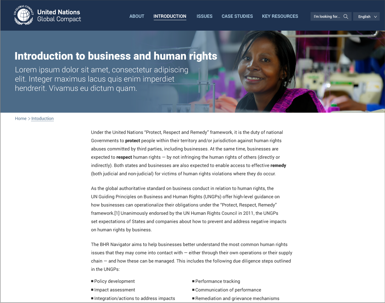 5. The website design needs to align with the United Nations Global Compact branding. Powerful real images should be used to illustrate each issue, while showcasing diversity and respecting the photo subjects.